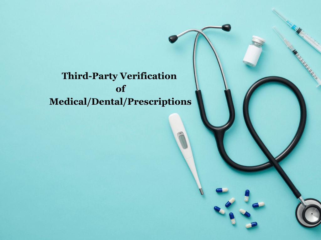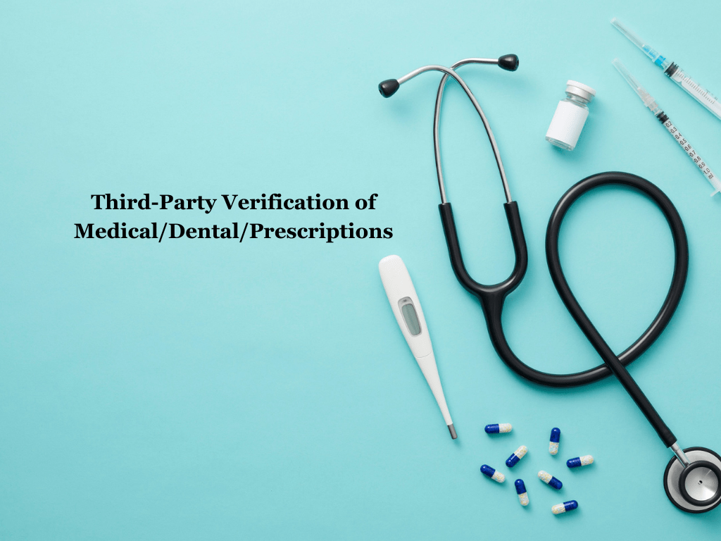 Third-party verification form for doctor, dentist and prescription out-of-pocket costs.